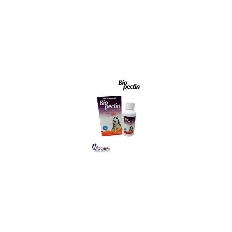 Product formulated for the treatment of colitis and enteritis problems with the presence of diarrhea in dogs. Due to its components, Biopectin has an antiperistaltic effect, absorbs toxins, prevents electrolyte deficiency caused by loss of liquids while improving stool consistency.