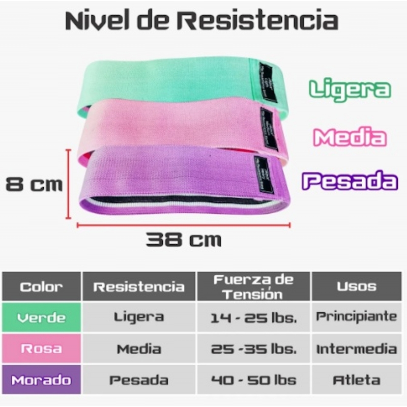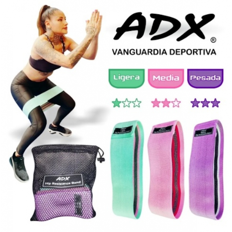 SET DE 3 LIGAS DE ALTA RESISTENCIA ANTI-DESLIZANTES. UNIDAS Y COSIDAS CON HILO DE ALTA TENACIDA. MARCA ADX. 3 DIFERENTES TENSIONES