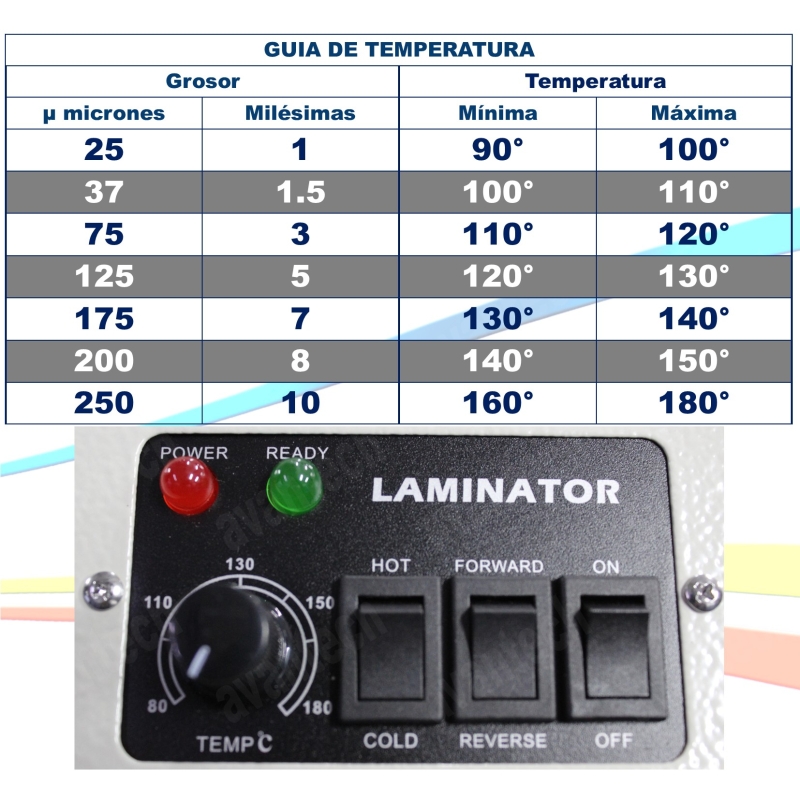 Sugerimos leer bien las instrucciones para obtener el mejor aprovechamiento de su enmicadora, en especial la guía de temperaturas.