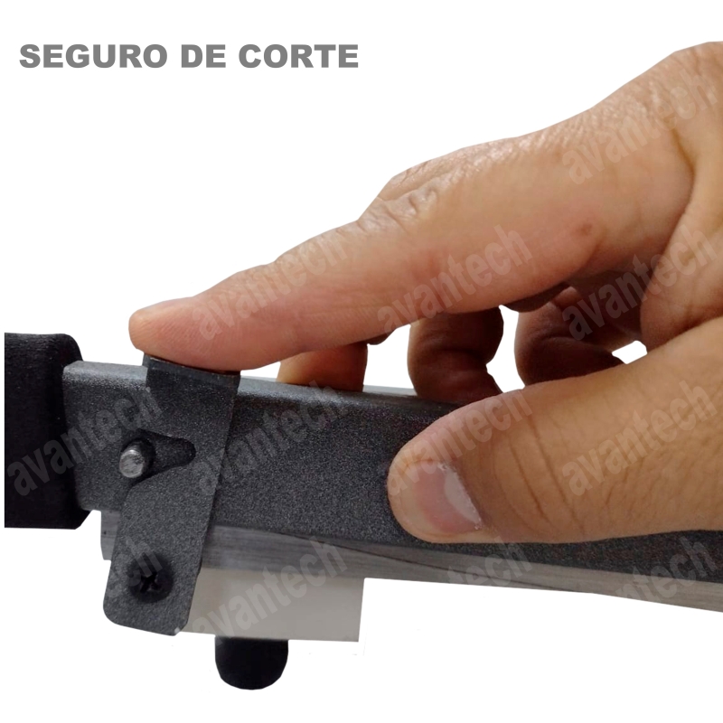 Pisón de corte para garantizar precisión en los acabados y seguridad al usuario, ya que impide que se introduzcan los dedos.
