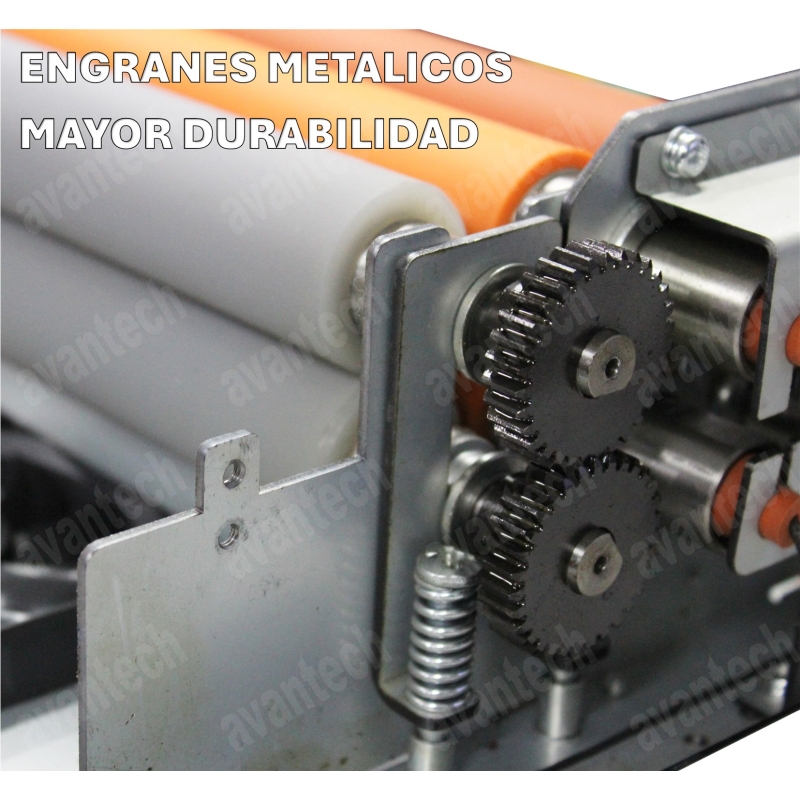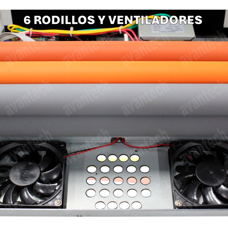 6 rodillos, 4 de calor para mayor eficiencia en el acabado y 2 de salida