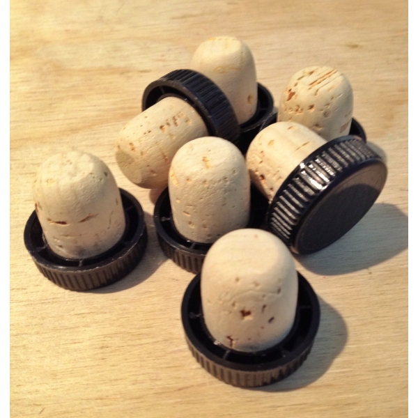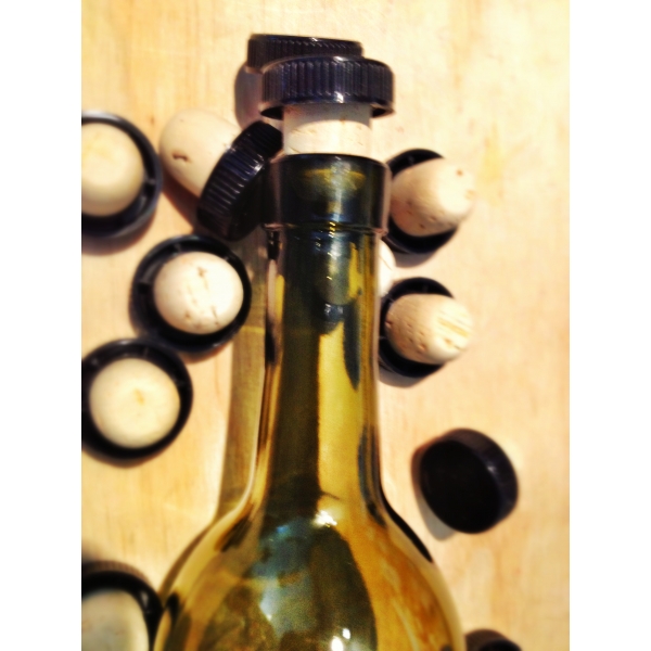 Tapones de corcho con tapa de plástico integrada que permite colocarlos y retirarlos de la botella utilizando solo las manos.