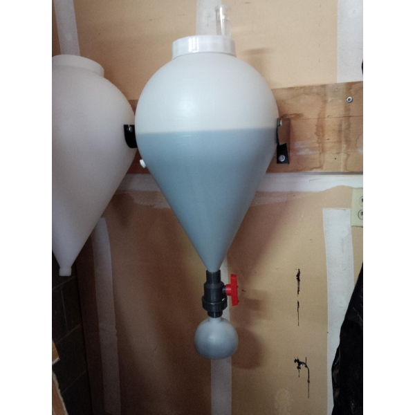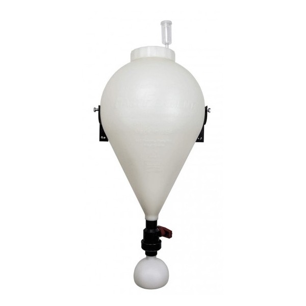 Fermentador conico. Fabricado en HDPE grado alimenticio. Incluye valvula, colector de levadura, juntas, soporte de pared y manguera.