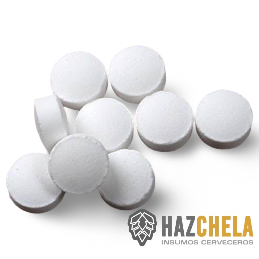 Tabletas de metabisulfito de potasio utiles para prevenir la oxidación y el crecimiento de levadura silvestre y bacterias en el mosto, se debe aplastar la tableta hasta pulverizar antes de utilizar.