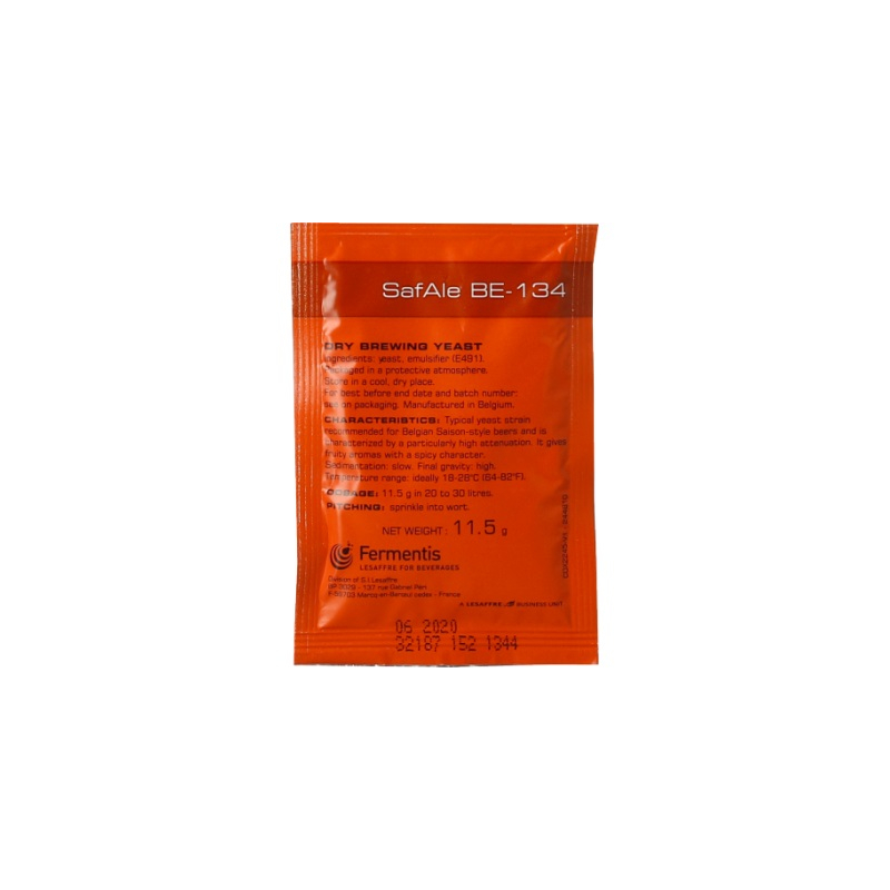 La levadura Safale BE-134, 11,5 gr.  Es una cepa recomendada principalmente para cerveza de estilo Saison Belgas y se caracteriza por una alta atenuacion. Nos brinda aromas afrutados con un caracter especiado como notas a clavo.