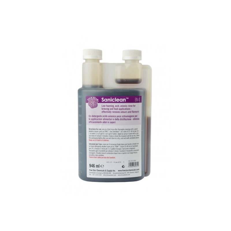 SANICLEAN es un sanitizante de baja espuma el cual nos da la misma efectividad que el STAR SAN pero con la ventaja de no producir espuma, además tiene la capacidad de eliminar los olores residuales  en nuestro equipo. Muy útil cuando queremos sanitizar usando sistemas de aspersión o bombeo, ya que no tendremos el problema de llenar el equipo de espuma.