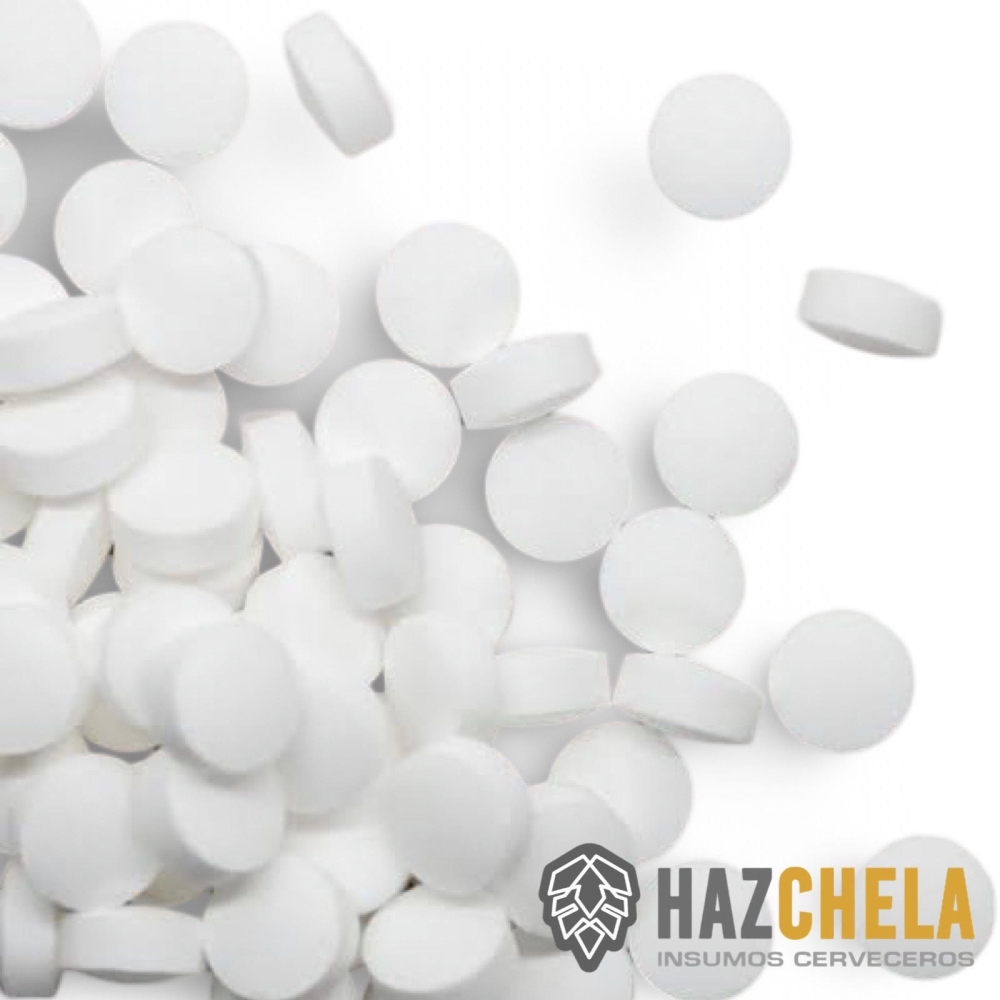 Tabletas de metabisulfito de potasio utiles para prevenir la oxidación y el crecimiento de levadura silvestre y bacterias en el mosto, se debe aplastar la tableta hasta pulverizar antes de utilizar.