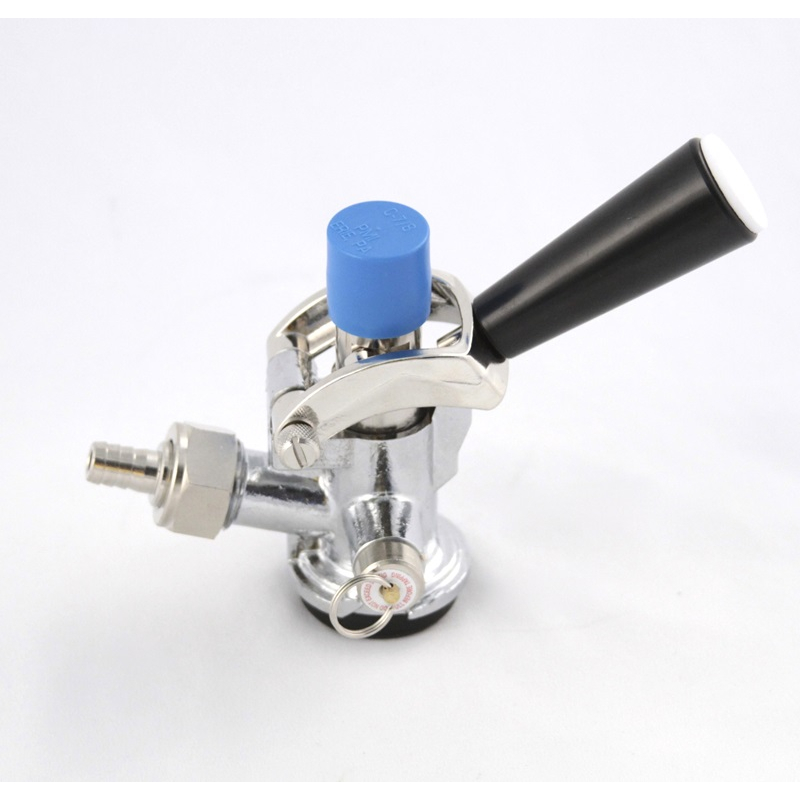 Acoplador para barriles Tipo D con zonda interna de acero inoxidable y cuerpo exterior recubierto de cromo.