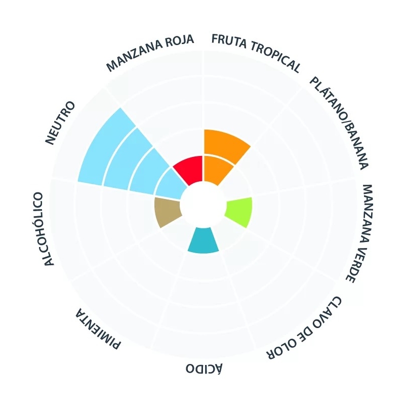 Aroma Relativamente neutra a altas temperaturas, con notas ligeras a naranjas y cítricos