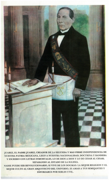 Juárez, El padre Juárez, creador de la segunda y más firme independencia de nuestra Patria Mexicana, legó a nuestra nacionalidad, doctrina y bandera y escribió con letras inmortales, lo de Dios a Dios y lo de César a César, separándo al estado de la iglesia.