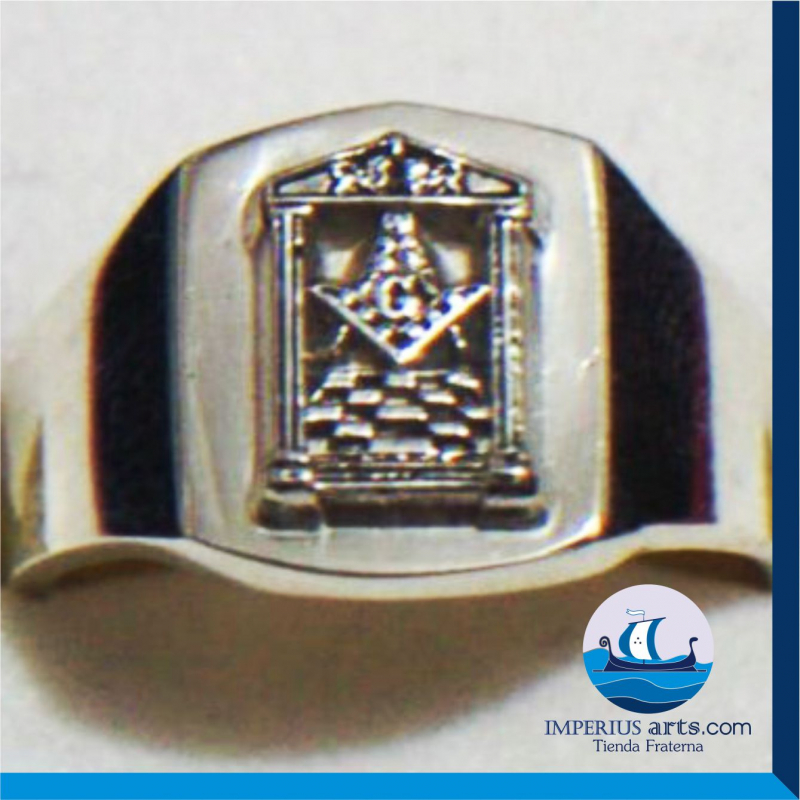 Anillo elaborado en Plata Ley .925, contiene detalle de Escuadra y Compás sobre el Templo.