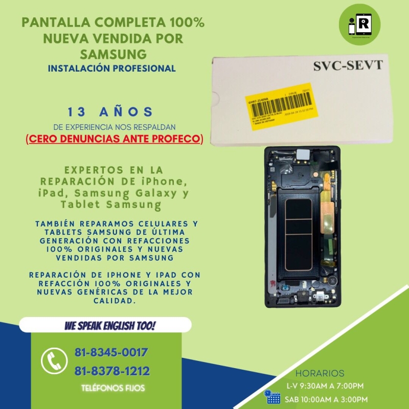NOTA MUY IMPORTANTE: Tenemos mas de 11 años de Experiencia en la Reparación de iPhones y mas de 4 años en la Reparación de Smartphones Samsung de Alta Gama UNICAMENTE con Refacciones 100% ORIGINALES Y NUEVAS sin que hasta a la fecha hayamos tenido alguna inconformidad, queja o menos una denuncia ante la Procuraduría Federal de Consumidor de parte de algún cliente.