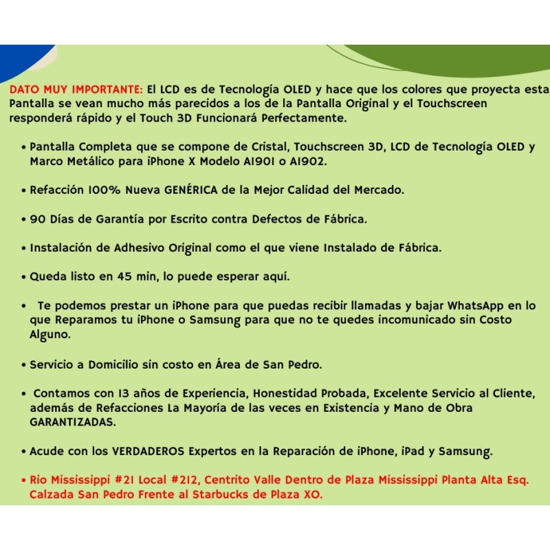 Comentarios y calificaciones: Reparación de Pantalla Completa OLED 100% NUEVA GENÉRICA para iPhone X en Monterrey Incluye Instalación en 45 Minutos