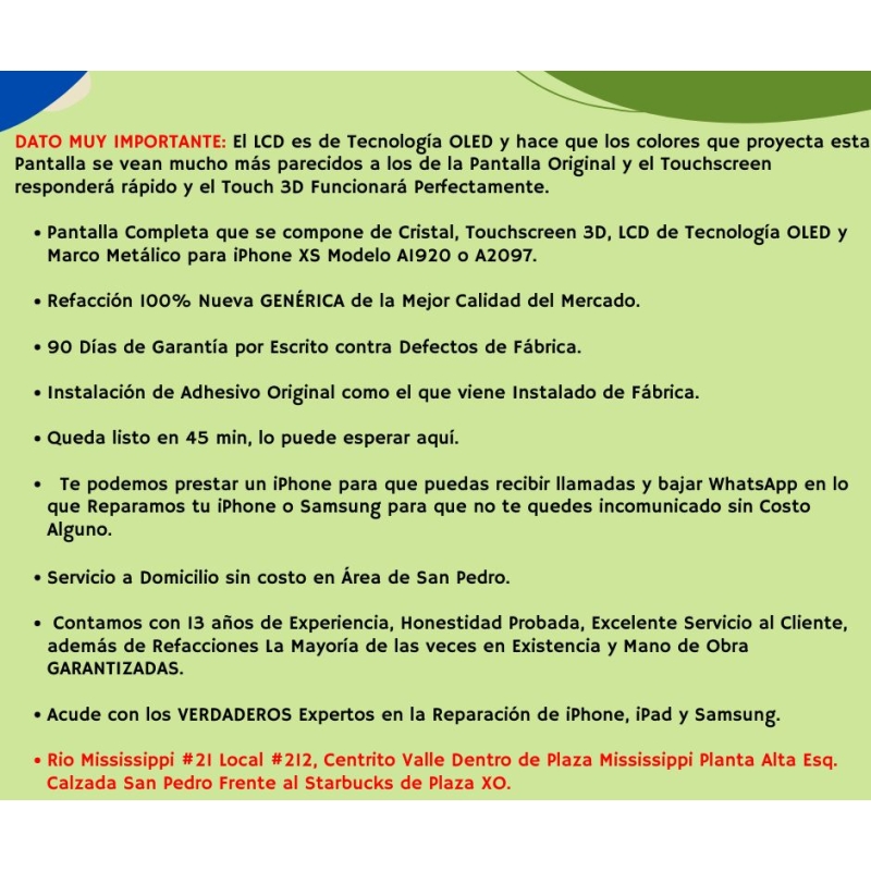 Comentarios y calificaciones: Reparación de Pantalla Completa OLED 100% NUEVA GENÉRICA para iPhone XS en Monterrey Incluye Instalación en 45 Minutos