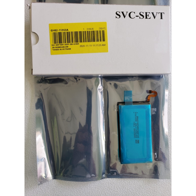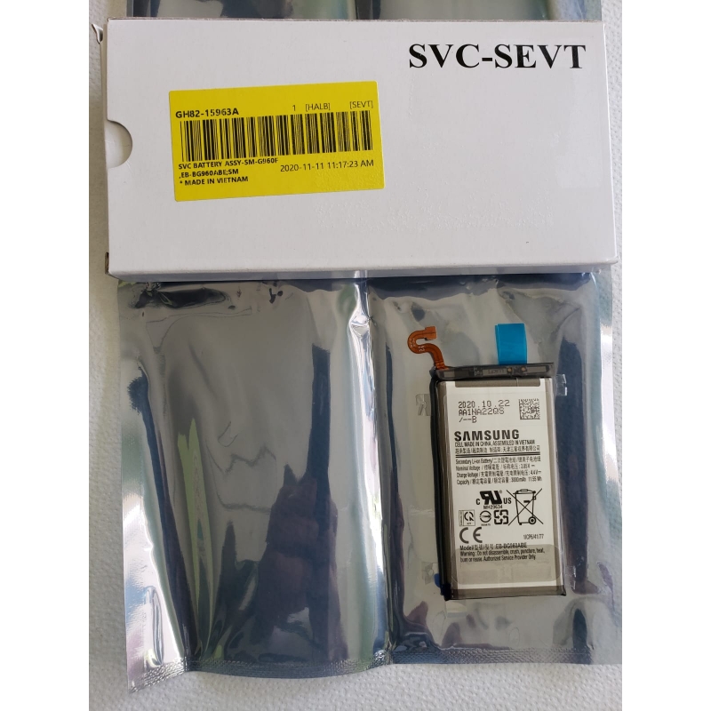 La Batería es 100% Nueva y GENUINA, Fabricada por Samsung como Refacción y viene como la manda Samsung de fabrica en una caja Blanca que dice con Mayúsculas (SVC-SEVT) que Significa SERVICE-SAMSUNG ELECTRONICS VIET NAM THAINGUYEN dentro de una Bolsa Anti-Estática y ya que la gran mayoría de las Refacciones Originales que Fabrica Samsung son Hechas en Vietnam y con una etiqueta Amarilla con todos los datos del Pais de Origen, Fecha de Fabricación y Modelo para el cual es Precisamente y ojo en este caso la Batería se fabricó en China y se Ensamblo en Vietnam y ya Trae Instalado el Adhesivo Original de Fabrica por la Parte Trasera de la Batería.