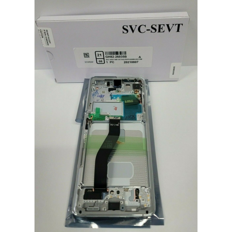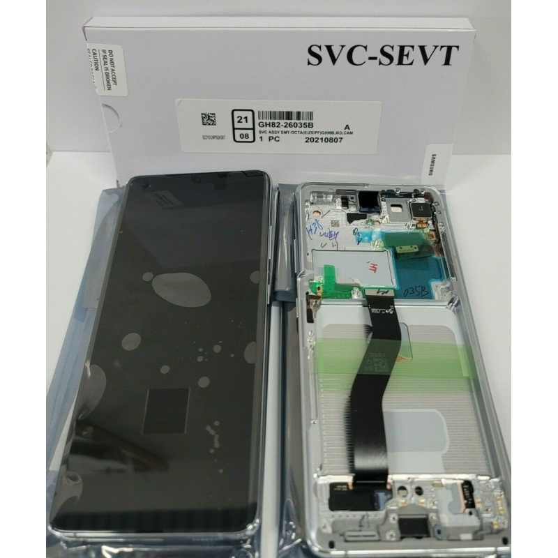 Pantalla Completa 100% ORIGINAL y NUEVA Vendida por Samsung como Refacción que incluye Marco de Aluminio Completo con Botones, Flexes, Auricular para el Samsung Galaxy S21 Ultra para los siguientes Modelos: 1.- SM-G998B, 2.- SM-G998B/DS , 3.- S20+ BTS SM-G998B/DS 4.- SM-G998, 5.- SM-G998U, 6.- SM-G998U1, 7.- SM-G9890, 8.- SM-G989N, 9.- SM-G989WS