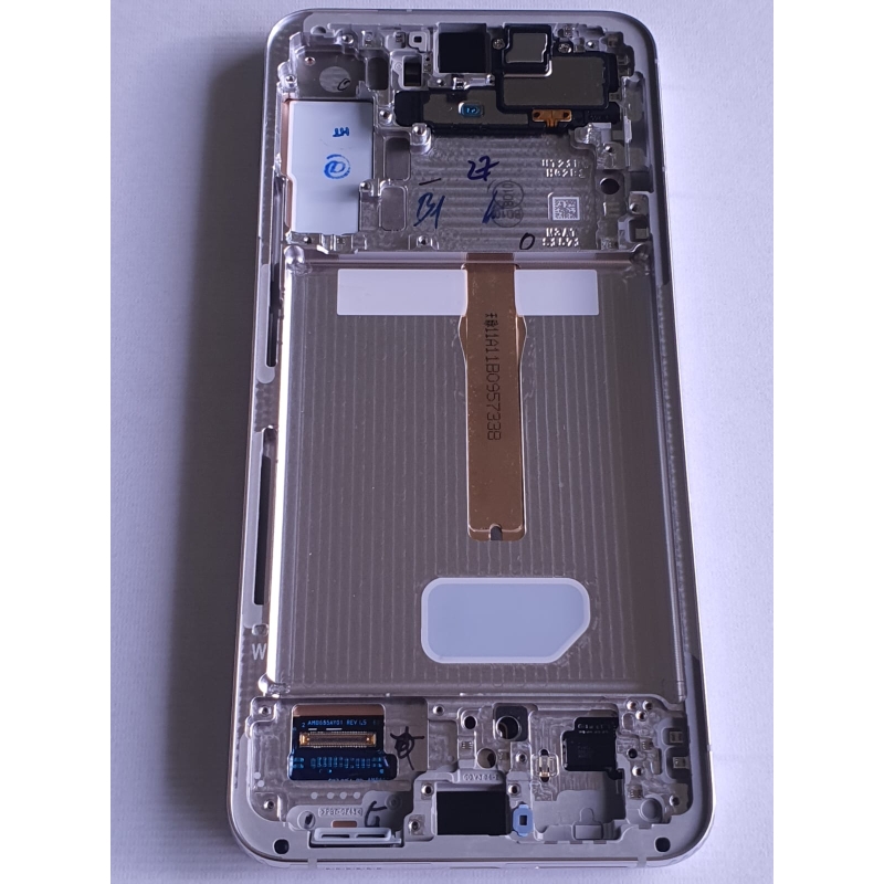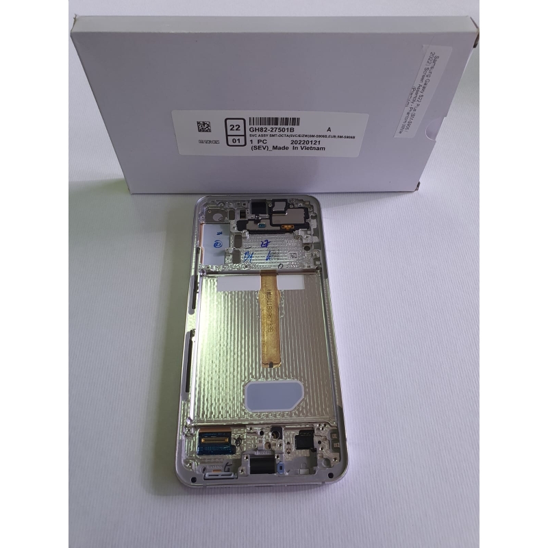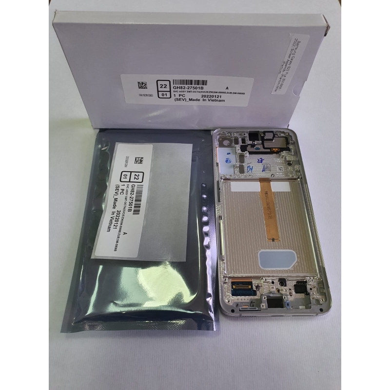 La gran ventaja de haber adquirido un Smartphone S22 Plus es que Samsung Si vende Refacciones Genuinas y Nuevas y tu podrás preguntarte como saber que una Pantalla es 100% Original y Nueva y que fue vendida como Refacción por Samsung y tu lo puedes distinguir porque principalmente las Pantalla de S22 Plus Modelo SM-S906E que es el modelo que se vende en México viene con el Marco de Aluminio Completo con Botones y Flexes incluidos así como del Auricular, el Vibrador y la Malla protectora del Altavoz que vienen sellados y no podrá entrar el agua y trae protectores plásticos en todo el rededor de el Marco de Aluminio donde vienen los Botones con los Flexes además de que traen otros protectores plásticos por dentro de la Pantalla que se localizan de izquierda a derecha y de arriba a abajo en el Micrófono Superior, en el Protector de los Lentes de las Cámaras, en el Auricular, en el Flex de Proximidad, en el Procesador de la Tarjeta Madre que esta a un lado del conector principal de la Pantalla y en el Micrófono Inferior que nunca podrá traer una Pantalla Usada y así exactamente como vez en las fotografías de la publicación recibirás la nueva Pantalla en una 1 Caja Blanca con 1 Etiqueta Adherida con la que manda Samsung con toda la información Completa de la pantalla que estás comprando con las Letras Mayúsculas en Negro SEVT-SVC por los 2 lados y a su vez la Pantalla viene dentro de una