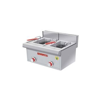 Freidora con 2 tinas en acero inoxidable tipo 304, esquinas sanitarias, capacidad para 3 litros de aceite por tina, medida interior de cada una: