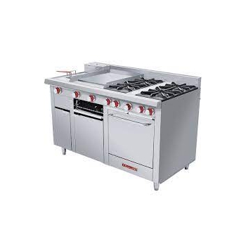 4 quemadores abiertos octagonales con tapa desmontable en hierro fundido de 30,000 B.T.U./hr cada uno.