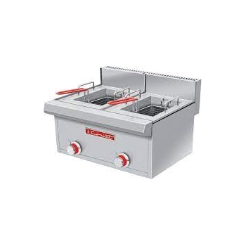 2 tinas en acero inoxidable tipo 304, esquinas sanitarias, capacidad 3 litros de aceite c/u, medida interior: frente: 0.204 m, fondo: 0.300 m, alto: 0.150 m.