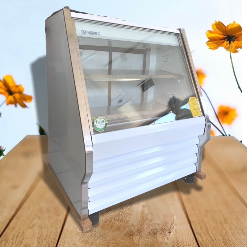Gran capacidad de almacenamiento y exhibición por su amplio frente, su cubierta superior es de acero inoxidable