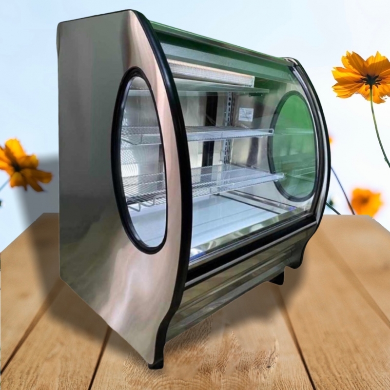 deja tu Comentario y calificación: Vitrina marca MASSER modelo EPAIX-070 vidrio curvo, setenta centimetros , parrillas ajustables, toda en acero inoxidable