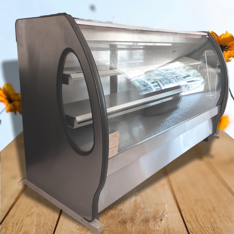 deja tu Comentario y calificación: Vitrina marca MASSER modelo 1500-EAIX, de metro y medio, vidrio curvo, entrepaños fijos, toda en acero inoxidable