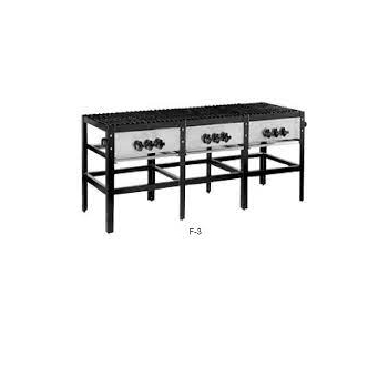 Material: Estructura fabricada en ángulo de 2” y 1 1/2” acabado esmaltado. Parrillas dentadas de hierro fundido. El frente de las válvulas está fabricado en acero inoxidable.