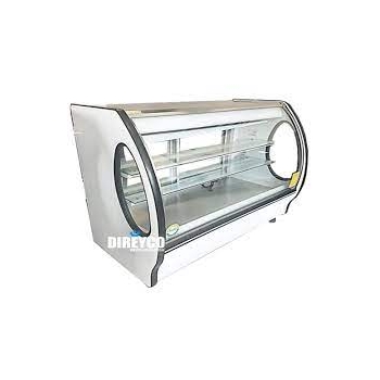 deja tu Comentario y calificación: Vitrina marca MASSER modelo 2000-ECR, vidrio curvo, dos metros, entrepaños de cristal, blanca