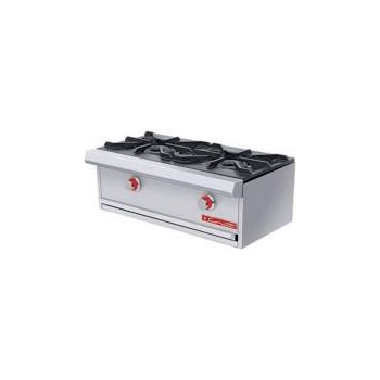 2 quemadores octagonales con tapa desmontable en hierro fundido.