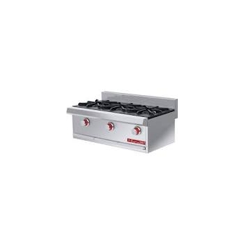 • 3 parrillas superiores en hierro fundido montadas sobre cubierta semi-sellada.