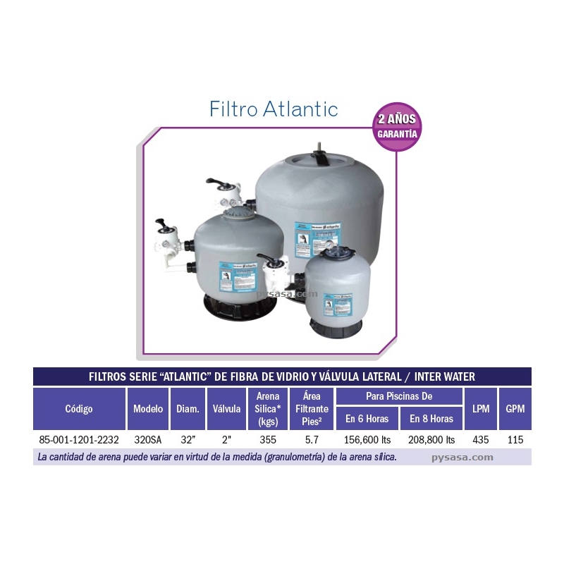 Nota: El material filtrante (Arena o Zeolite) no está incluido en este precio.