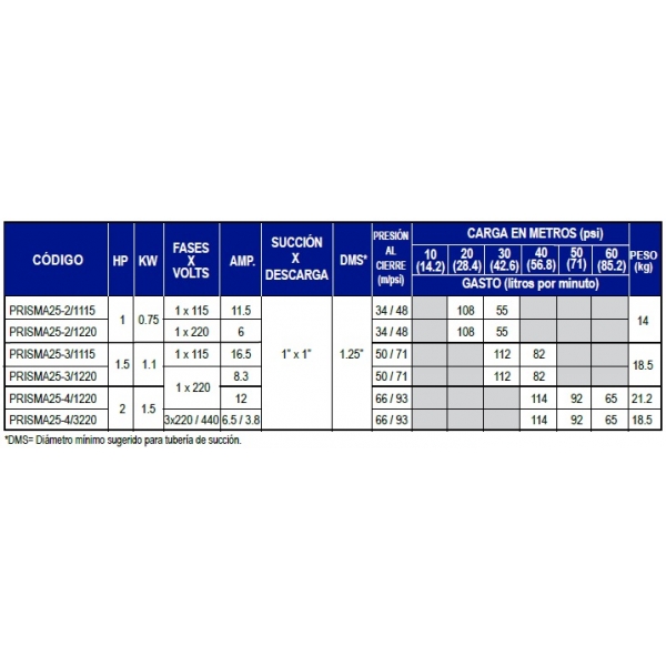 Bomba Centrifuga Multietapas ESPA Serie PRISMA25-2/1115, 1HP