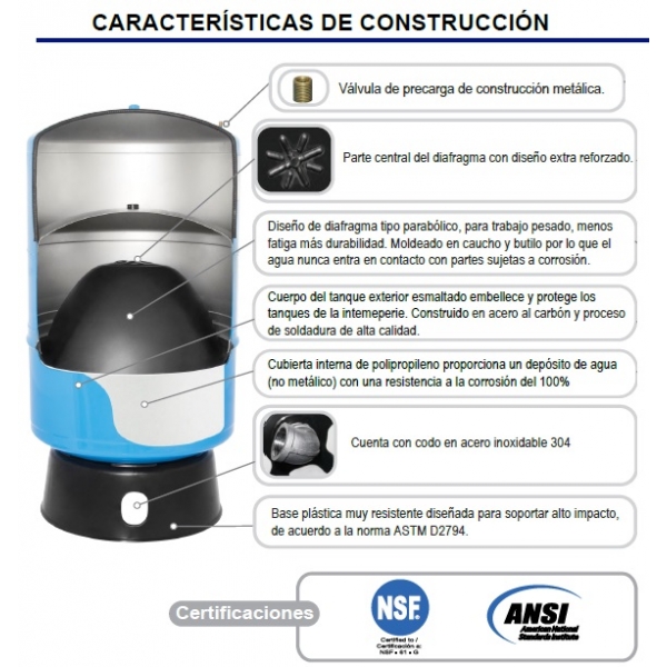 • Diafragma de butilo/ EPDM resistente (30% m谩s grueso que los tanques est谩ndar).
