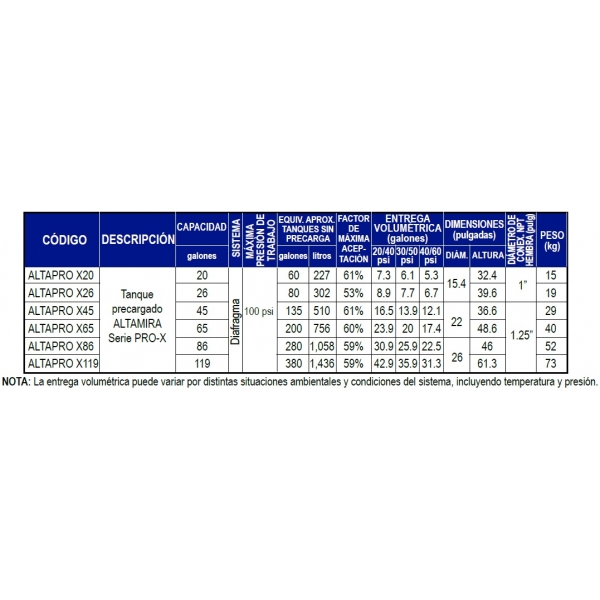 Tanque Precargados ALTAMIRA ALTAPRO XLB119, 119 Galones (125psi)
