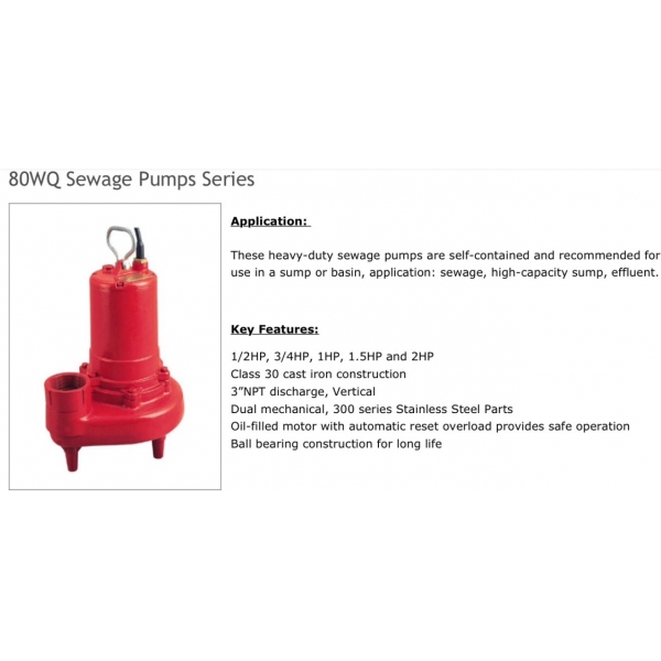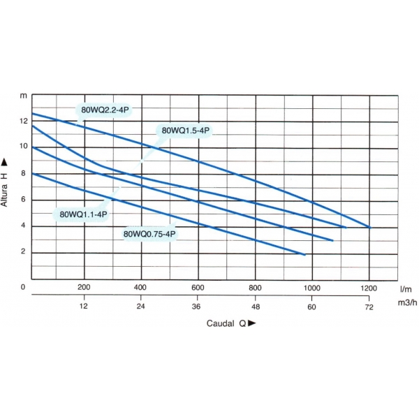 Bomba Sumergible Dos Aspas para agua sucia Modelo: 80WQ0.75-4P