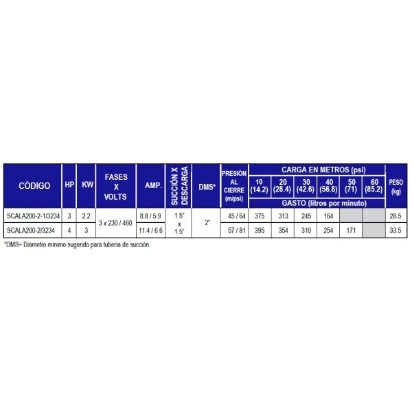 Motobomba multietapa horizontal SCALA200-2-1, 230Volts, 3 Fases