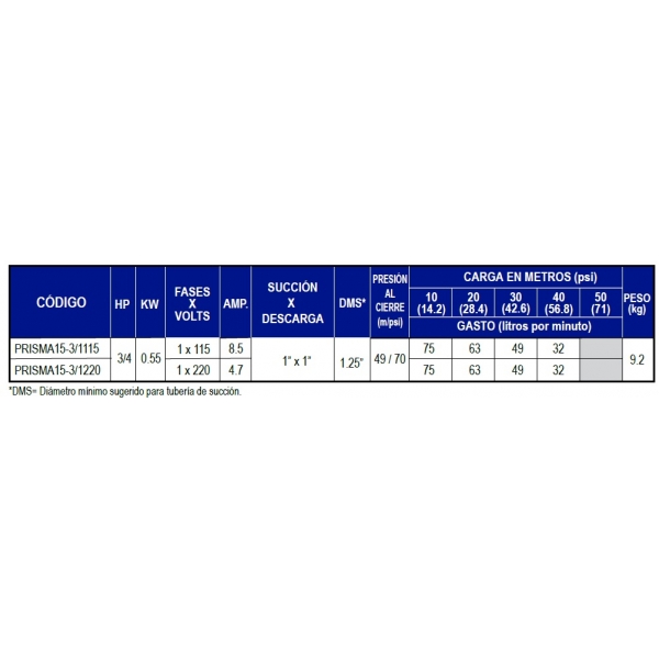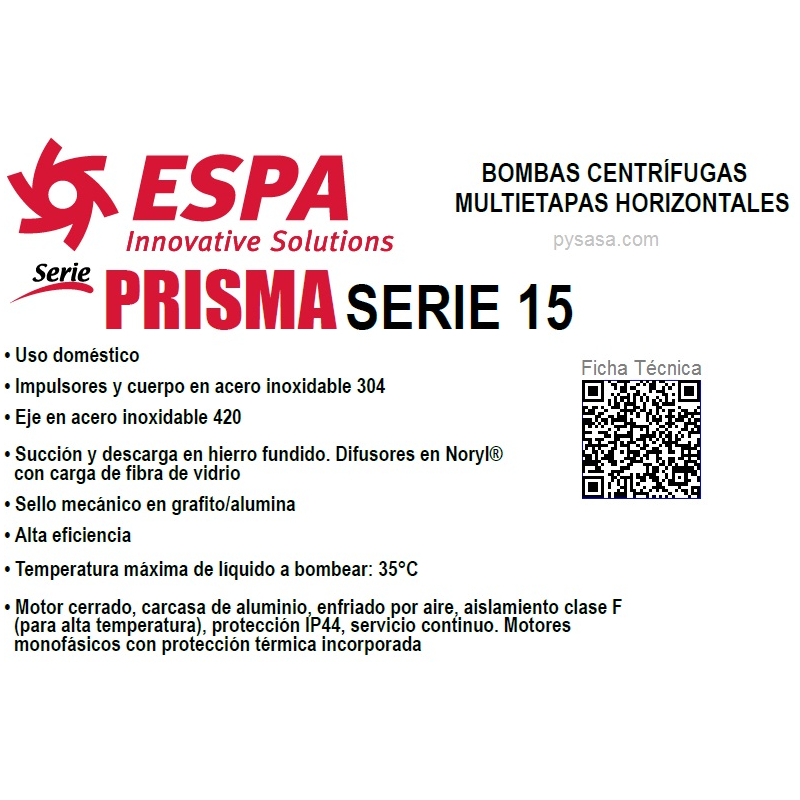 Bomba Centrifuga Multietapas ESPA Serie PRISMA15-3/1115, 3/4HP
