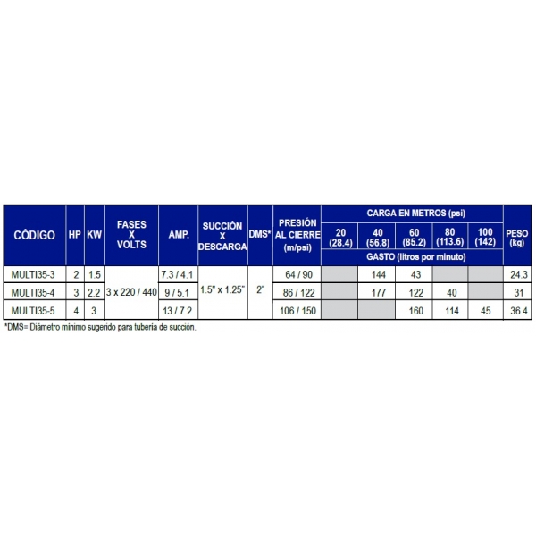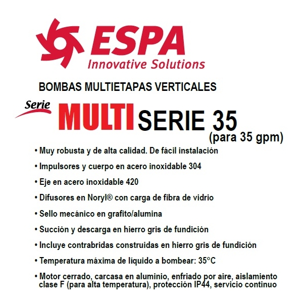 Motobomba ESPA modelo MULTI 35-3, de 2 HP, Trifasica 230/440Volts.
