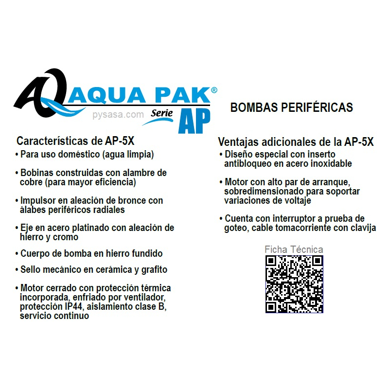 Motobomba Periférica Aquapak AP-50X, 127Volts, 1/2HP