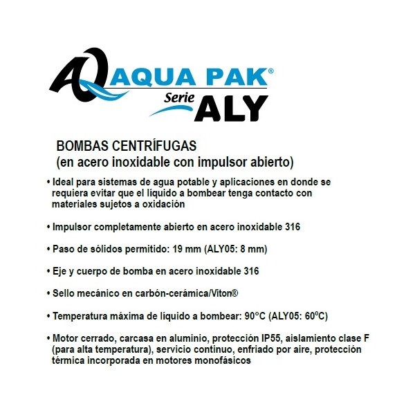 Bomba Centrifuga Aquapak modelo ALY40/3230, 230Volts, 3F, 4HP