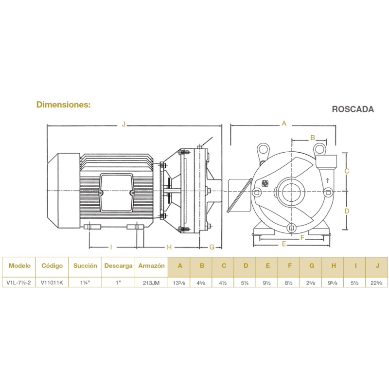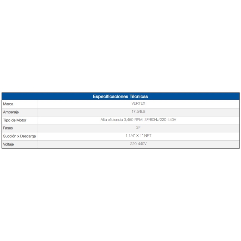 Motobomba VERTEX V1L, V11011K, de 7.5 HP, 3Fases, 220/440Volts