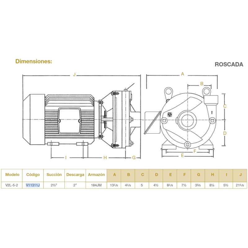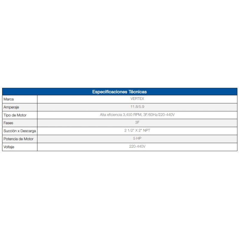 Motobomba VERTEX V2L, V11311J, de 5 HP, 3Fases, 220/440Volts