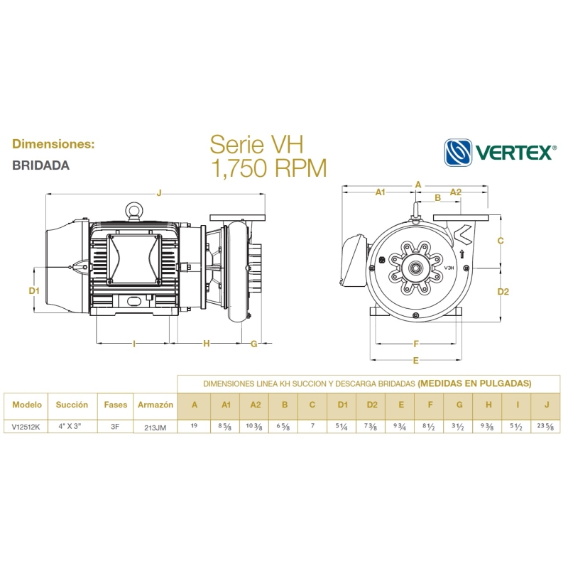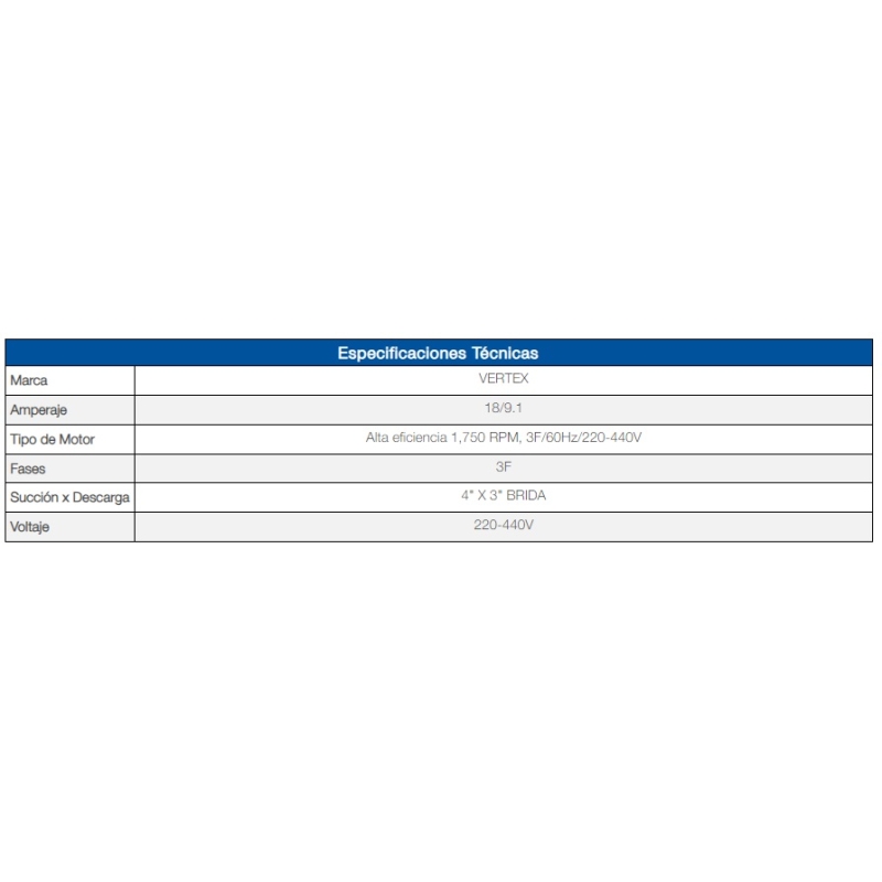 Motobomba VERTEX V3H, V12512K, de 7.5 HP, 1720 rpm, 3 Fases, 220/440Volts