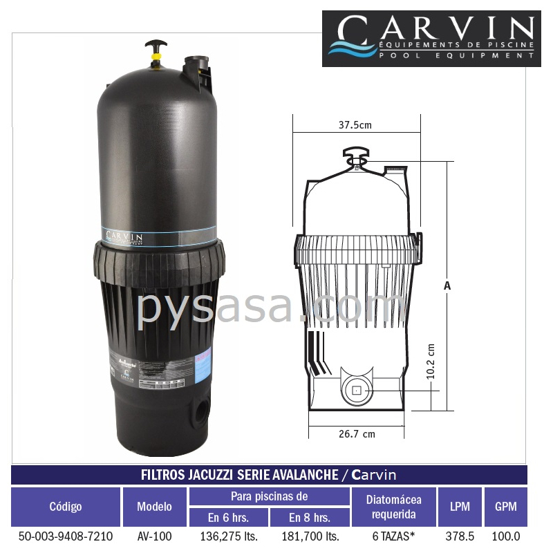 Filtro Serie Avalanche AV-100, de Tierra Diatomita, Marca Carvin