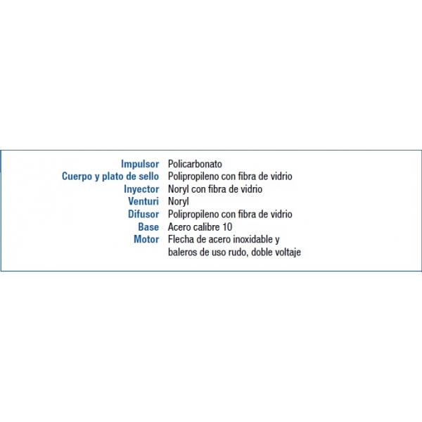 • baleros de uso rudo, doble voltaje 115V / 230V