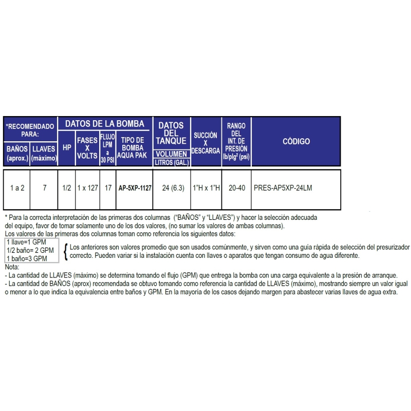 Comentarios y calificaciones: Presurizador Aqua PAk, Pres-AP5XP-24LM, 1/2 HP, 115Volts, 17Lpm @ 30psi