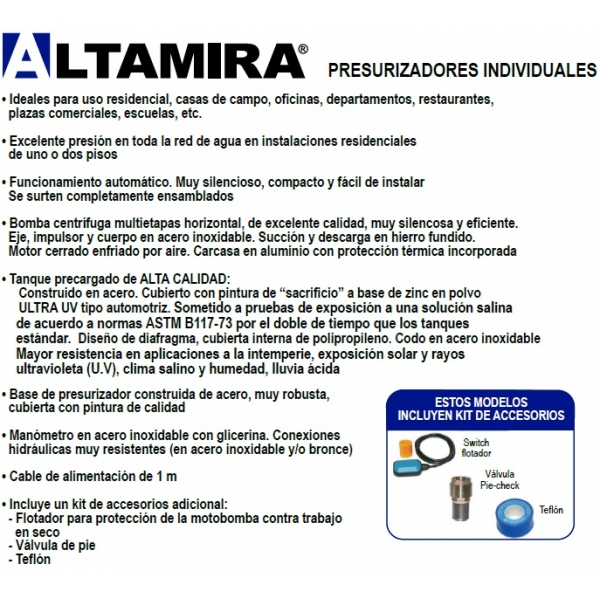 Presurizador ALTAMIRA, Pres-P15315-45X, 3/4 HP, 115Volts, 61Lpm