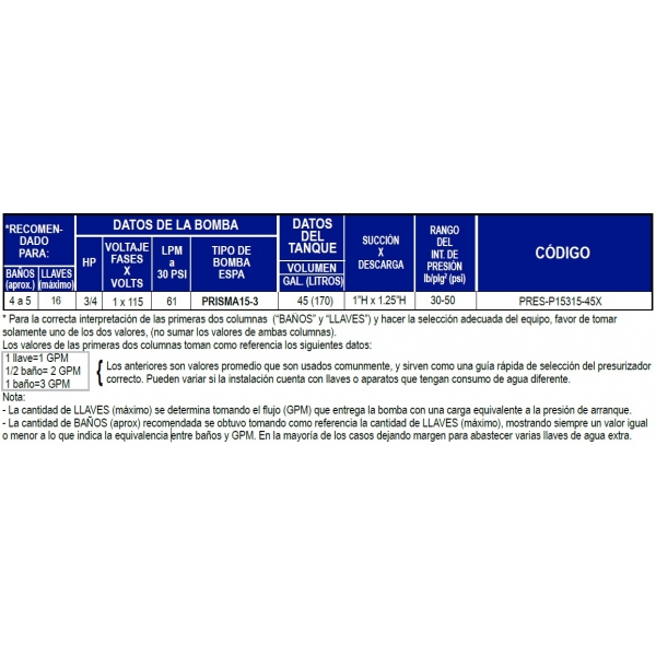 Comentarios y calificaciones: Presurizador ALTAMIRA, Pres-P15315-45X, 3/4 HP, 115Volts, 61Lpm