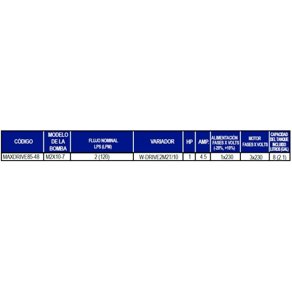 Presurizador Compacto Sumergible AQUAPAK, MAXDRIVE85-48, 1Hp, 230Volts, 1Fase, 100 Lpm